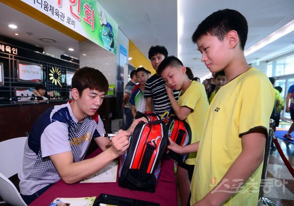 ‘이용대 올림픽제패기념 2017 화순 전국학교대항 배드민턴선수권대회’가 22일부터 28일까지 전남 화순군 하니움문화스포츠센터와 이용대체육관에서 열린다. 22일 대회 첫 날 오전 이용대(요넥스)가 하이움체육관에서 팬사인회를 하고 있다.