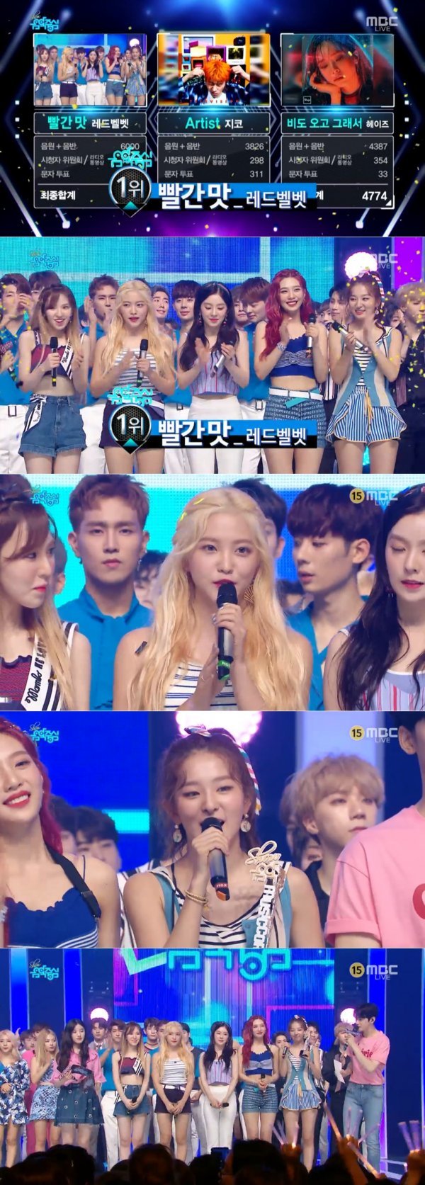 레드벨벳이 지코와 헤이즈를 꺾고 ‘쇼음악중심’ 1위를 차지했다.