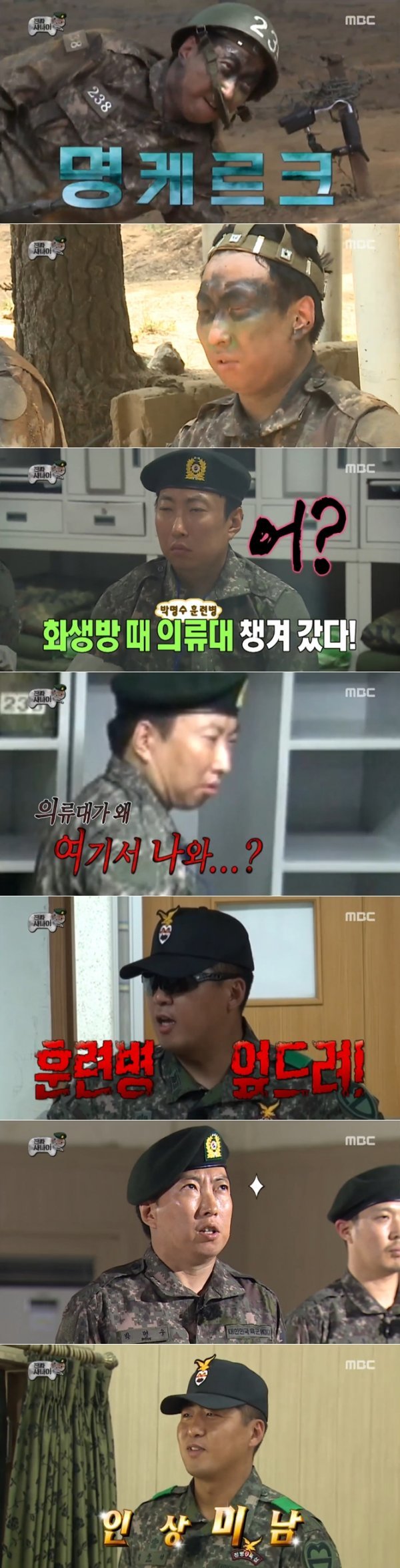 끝날 때까지 끝난 것이 아니었다. 퇴소식을 앞둔 시점 의류대가 실종된 것. 박명수는 조교가 가져갔다고 확신했지만 옆 관물대에서 발견됐다. 교관의 불호령에 멤버들을 마지막까지 긴장을 멈추지 못했다. 입소식 당시 거듭 말실수로 웃음 폭탄을 안겼던 박명수는 180도 다른 늠름한 모습으로 퇴소식 신고를 해내 눈길을 끌었다.
