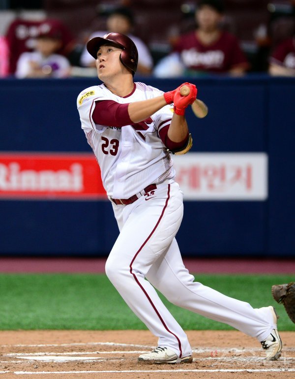 23일 서울 고척 스카이돔에서 ‘2017 타이어뱅크 KBO리그’ 넥센 히어로즈와 kt 위즈의 경기가 열렸다. 3회말 1사에서 넥센 장영석이 kt 선발 피어밴드를 상대로 좌월 동점 솔로 홈런을 쏘아올리고 있다.