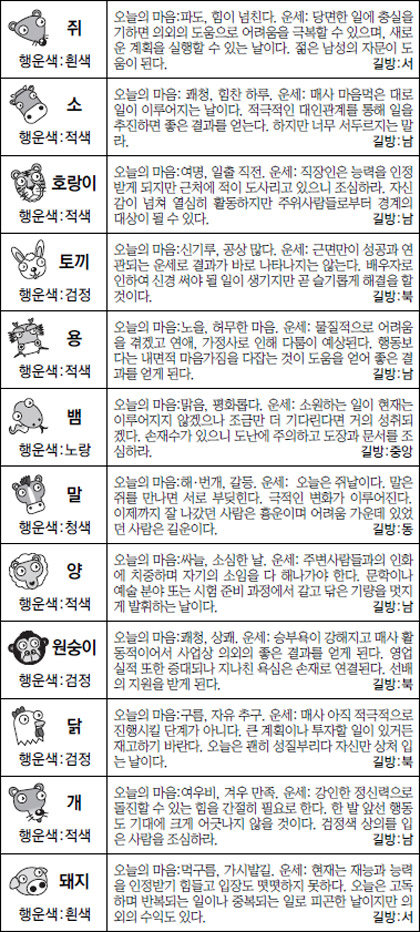 ■ 오늘의 운세|박경호의 운수 좋은 날