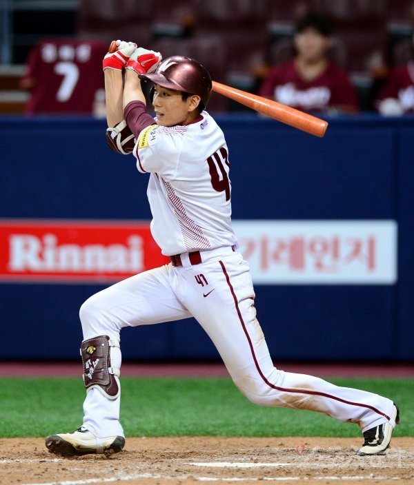 23일 서울 고척 스카이돔에서 ‘2017 타이어뱅크 KBO리그’ 넥센 히어로즈와 kt 위즈의 경기가 열렸다. 8회말 2사 만루에서 넥센 이정후가 2타점 적시타를 날리고 있다.