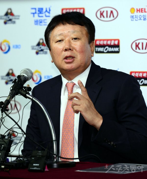 야구대표팀의 첫 전임 감독으로 선임된 선동열 감독이 소감을 밝히고 있다.