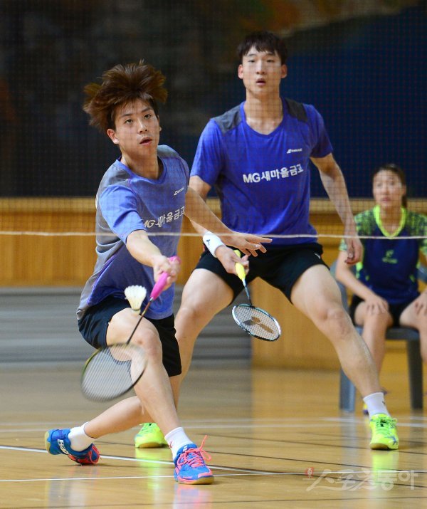 ‘이용대 올림픽제패기념 2017 화순 전국학교대항 배드민턴선수권대회’가 22일부터 28일까지 전남 화순군 하니움문화스포츠센터와 이용대체육관에서 열린다. 24일 남자대학부 단체전 4복식 경기에서 백석대 김휘태-임지수(온쪽) 조가 스매싱 공격을 하고 있다.