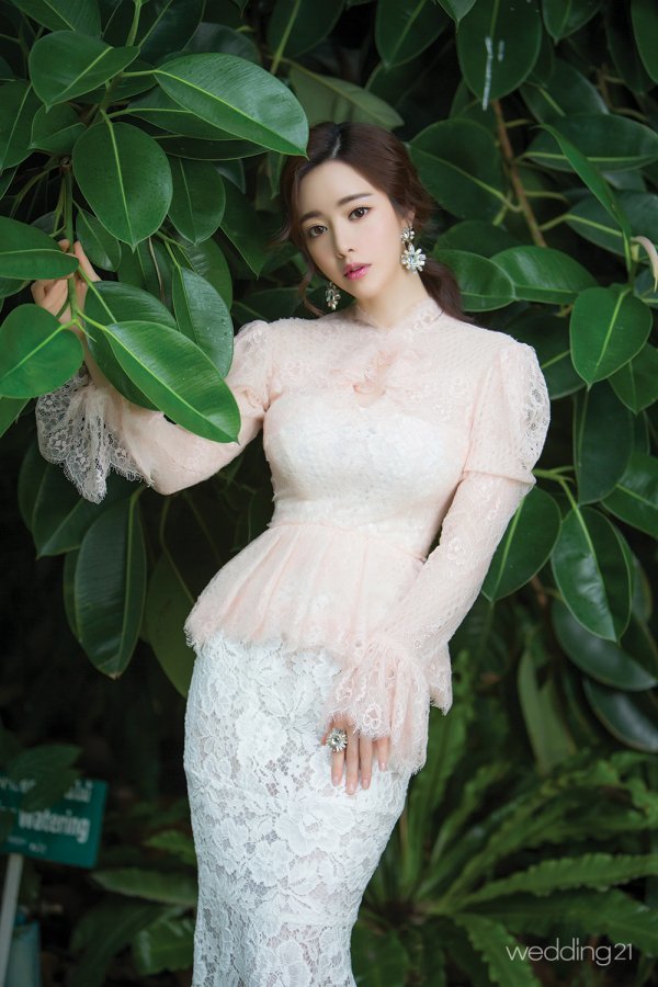 배우 홍수아가 웨딩드레스를 입고 웨딩지 월간웨딩21과 함께 우아한 여신의 미를 발산하는 웨딩 화보 촬영을 진행했다.