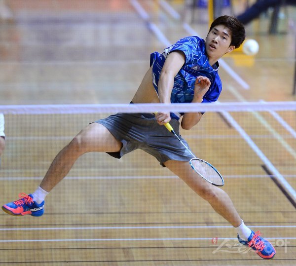‘이용대 올림픽제패기념 2017 화순 전국학교대항 배드민턴선수권대회’가 22일부터 28일까지 전남 화순군 하니움문화스포츠센터와 이용대체육관에서 열린다. 24일 남자대학부 단체전 2단식 경기에서 백석대 고경보가 스매싱 공격을 하고 있다.