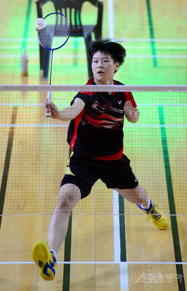 ‘이용대 올림픽제패기념 2017 화순 전국학교대항 배드민턴선수권대회’가 22일부터 28일까지 전남 화순군 하니움문화스포츠센터와 이용대체육관에서 열린다. 25일 여자중등부 단체 결승전 2단식 경기에서 구남중 최혜진이 리턴을 하고 있다.