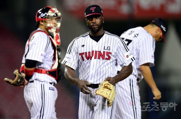 25일 서울 잠실야구장에서 ‘2017 타이어뱅크 KBO리그’ LG 트윈스와 넥센 히어로즈의 경기가 열렸다. 6회초 1사에서 넥센 장영석에게 솔로 홈런을 허용한 LG 소사가 교체되고 있다.