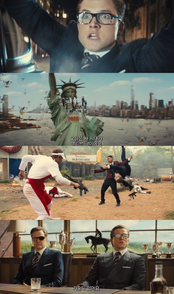 단 한 순간도 눈을 뗄 수 없는 자동차 추격 장면은 물론, “킹스맨에게 작별 인사하세요”라는 포피의 대사와 함께 일어난 본부 폭파, 그리고 총과 우산을 주로 한 영국 대표 킹스맨과 올가미를 다루는 스테이츠맨의 액션이 완벽한 대비를 이룬다. 이들 장면은 대한민국이 사랑한 ‘킹스맨’ 시리즈의 상징과도 같은 혁신적이고 스타일리쉬한 액션의 정점을 찍는다. 여기에 미국 스파이 스테이츠맨을 처음 만난 에그시의 도발과, 이에 개의치 않는 스테이츠맨의 태도 대비가 웃음을 자아내며 그들이 펼칠 동맹과 갈등에 대한 기대를 고조 시킨다. 또한 스테이츠맨 소속 에이전트 위스키(페드로 파스칼)가 ‘킹스맨: 시크릿 에이전트’의 가장 유명한 대사 “매너가 사람을 만든다”를 말하고, 이에 해리 하트(콜린 퍼스)가 “무슨 뜻인지 알지?”라고 답하는 모습이 담겨 관객들의 뜨거운 환호를 받을 핵심 장면을 완성했다.