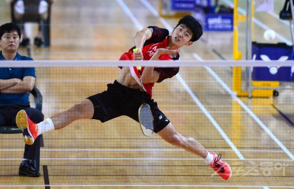 ‘이용대 올림픽제패기념 2017 화순 전국학교대항 배드민턴선수권대회’가 22일부터 28일까지 전남 화순군 하니움문화스포츠센터와 이용대체육관에서 열린다. 26일 남자대학부 단식 준결승에서 한림대 조건엽이 스매싱 공격을 하고 있다.