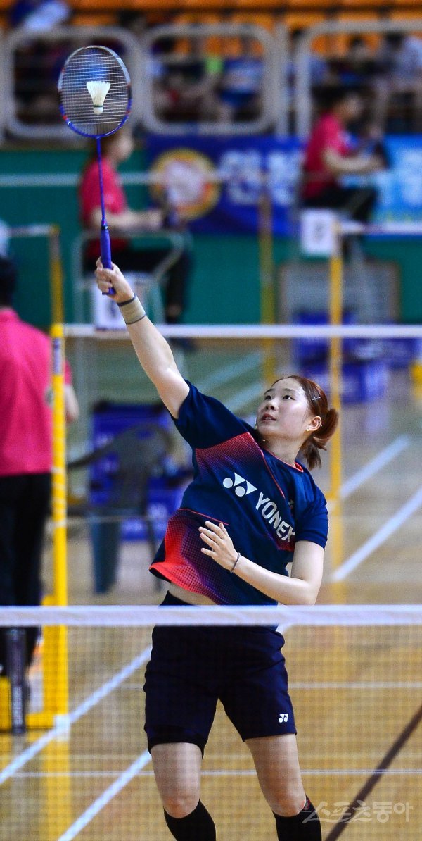 ‘이용대 올림픽제패기념 2017 화순 전국학교대항 배드민턴선수권대회’가 22일부터 28일까지 전남 화순군 하니움문화스포츠센터와 이용대체육관에서 열린다. 26일 여자대학부 단식 준결승에서 군산대 김설화가 스매싱 공격을 하고 있다.