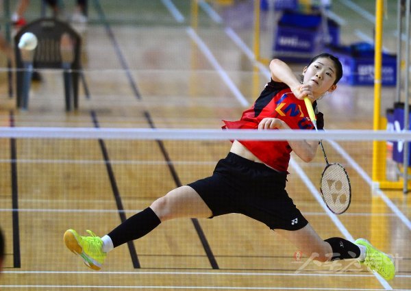 ‘이용대 올림픽제패기념 2017 화순 전국학교대항 배드민턴선수권대회’가 22일부터 28일까지 전남 화순군 하니움문화스포츠센터와 이용대체육관에서 열린다. 26일 여자대학부 단식 준결승에서 인천대 김주은이 스매싱 공격을 하고 있다.