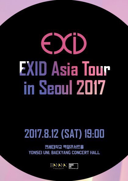‘EXID Asia Tour in Seoul 2017’은 오는 8월 12일 토요일 오후 7시, 연세대학교 백양콘서트홀에서 펼쳐진다.