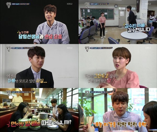 김승현이 학부모 면담을 신청한 이유는 크게 두 가지였다. 최근 딸이 학교를 가기 싫어하는 것과 과거 집단 따돌림의 아픔을 지닌 딸의 교우관계가 걱정됐던 것. 면담 결과, 아파서 지각하는 것은 어쩔 수 없었지만 수빈이는 모범적인 학생들에 비해서는 조퇴나 지각이 많은 편이었다. 가장 우려했던 교우 관계도 순탄치 않았다. 딸은 새 학년에 올라간지 절반이 다 지났지만 새로운 반 친구들하고 어울리지 못했다.
