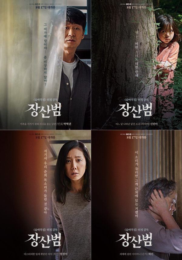 낯선 ‘여자애’(신린아)를 만난 후 미스터리한 일에 휘말리는 ‘희연’(염정아)의 캐릭터 포스터는 불안한 눈빛과 긴장감 가득한 표정, 그리고 ‘저기서 우리 준희 목소리가 들린 것 같아’란 카피로 딸의 목소리를 흉내 내는 ‘장산범’에 대한 호기심을 자극, 영화 속에서 펼쳐질 이야기를 더욱 궁금하게 한다. 이어 가족을 지키기 위해 의심을 품기 시작하는 ‘민호’ 역의 박혁권의 두려움과 의심을 담은 눈빛과 함께 ‘그 여자애 말이야… 좀 이상하지 않아?’라는 카피가 담긴 ‘민호’ 캐릭터 포스터는 가족에게 닥칠 위협과 균열을 예고, 서늘한 긴장감을 선사한다.