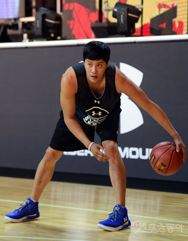 27일 서울 중구 장충체육관에서 ‘스테판 커리 Live in Seoul’이 열렸다. 게스트로 참가한 우지원 해설위원이 행사 전 연습을 하고 있다.