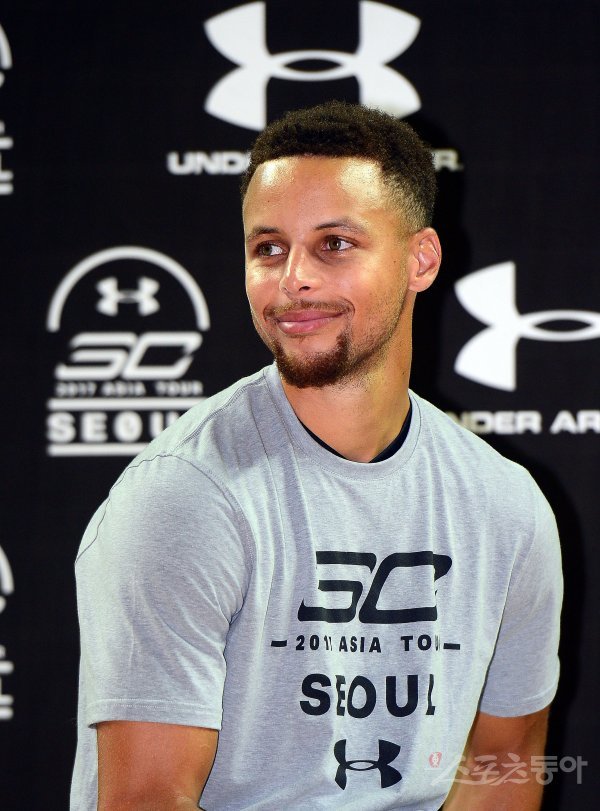 27일 서울 중구 장충체육관에서 ‘스테판 커리 Live in Seoul’이 열렸다. 세스 커리와 스테판 커리(오른쪽)가 행사가 끝난 후 공식 기자회견에서 미소 짓고 있다.