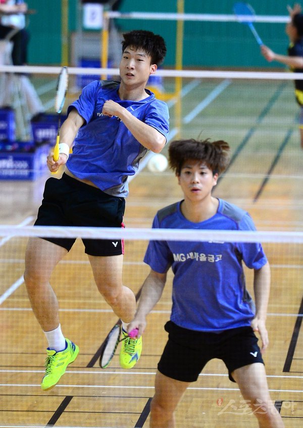 ‘이용대 올림픽제패기념 2017 화순 전국학교대항 배드민턴선수권대회’가 22일부터 28일까지 전남 화순군 하니움문화스포츠센터와 이용대체육관에서 열린다. 27일 남자대학부 복식 경승에서 백석대 김휘태(왼쪽)-임지수 조가 스매싱 공격을 하고 있다.