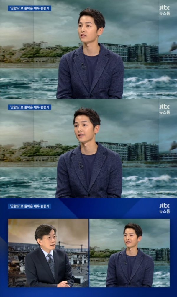 27일 JTBC ‘뉴스룸-문화초대석’에 출연한 송중기는 손석희 앵커와 함께 영화 ‘군함도’에 대한 이야기를 비롯해 배우로서의 삶에 대해 인터뷰했다.