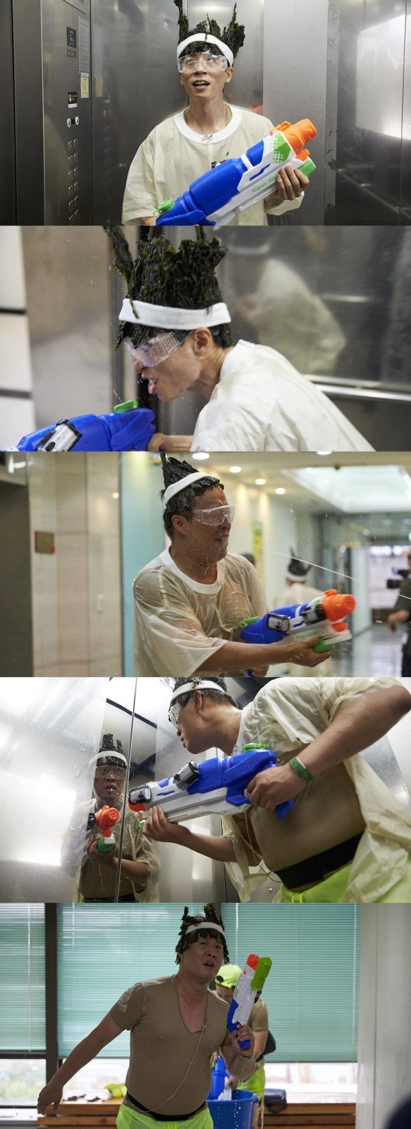 특히 유재석의 모습은 단 번에 시선을 강탈한다. 그는 특수제작 의상을 입고 물안경과 물총으로 물총축제를 즐길 준비를 마친 가운데, 마른 미역을 머리에 두르고 흰 띠로 마감한 ‘미역 왕관’을 쓰고 있어 폭소를 자아내고 있는 것. 뿐만 아니라 유재석은 치열한 전투(?) 같은 추격전 속에서 점점 독기가 오르고, 집중한 입으로 물총을 누군가에게 겨누고 있어 시선을 강탈한다.
