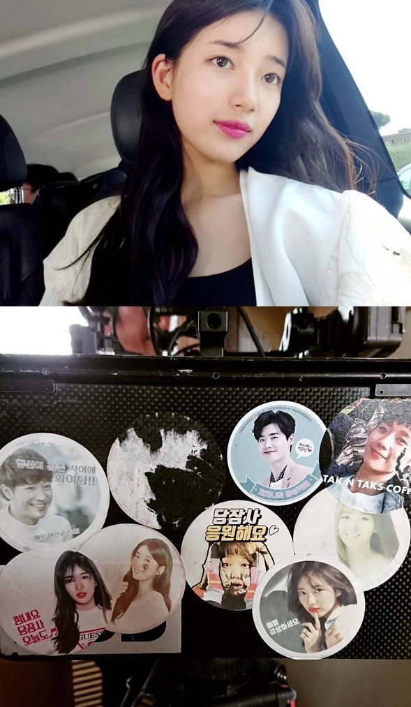 공개한 사진은 SBS ‘당신이 잠든 사이에’의 출연진인 수지, 이종석, 이상엽, 정해인의 모습이 담긴 스티커. 수지는 27일을 끝으로 ‘당잠사’의 촬영을 마친 것으로 알려졌다.