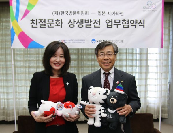 한국방문위원회(위원장 박삼구)와 일본 니가타현은 28일 일본 니가타 현청에서 양 기관의 관광 콘텐츠 및 친절문화 상호 교류를 위한 업무협약을 체결했다.