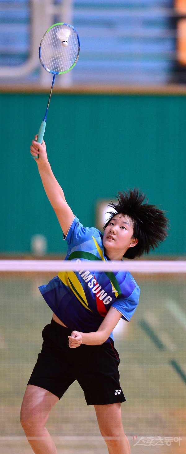 ‘이용대 올림픽제패기념 2017 화순 전국학교대항 배드민턴선수권대회’가 22일부터 28일까지 전남 화순군 하니움문화스포츠센터와 이용대체육관에서 열렸다. 28일 여자중학부 단식 결승에서 명인중 이소율이 스매싱 공격을 하고 있다.