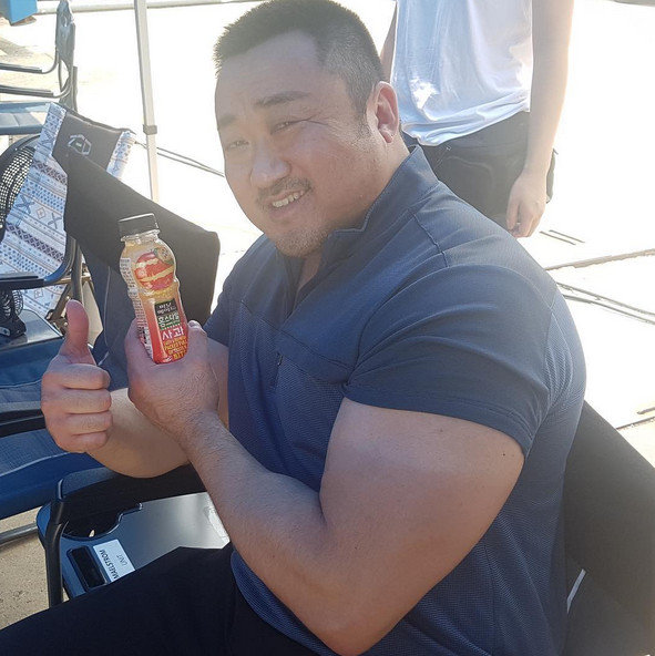 마동석은 28일 자신의 인스타그램에 “더운 촬영장에 시원한 선물이 왔습니다. #미닛메이드 #감사합니다”라는 글과 함께 사진 한 장을 게재했다.
