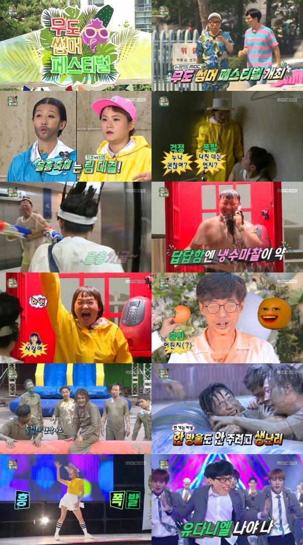 ‘무한도전’이 ‘무도 썸머 페스티벌’ 특집을 통해 ‘몸개그 축제’를 벌였다. 도무지 끝날 것 같지 않은 ‘생고생 축제’에서 ‘무한도전’의 웃음 내공이 빛을 발했고 시청자들은 몸개그 열전 속 멤버들의 몸을 사리지 않는 웃음 투혼에 박장대소 하며 박수를 보냈다. 초심을 잃지 않은 ‘몸개그 폭탄’이 호평을 받으며 시청률 역시 토요일 전체 예능프로그램 중 유일한 두 자릿수를 기록하며 토요일 전체 예능프로그램 중 1위를 차지했다.