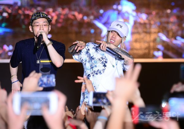 29일 강원도 양양 낙산해수욕장에서 2017 비키니코리아 & 낙산비치페스티벌이 열렸다. 랩퍼 더 콰이엇과 도끼(오른쪽)가 열정적인 공연을 펼치고 있다.