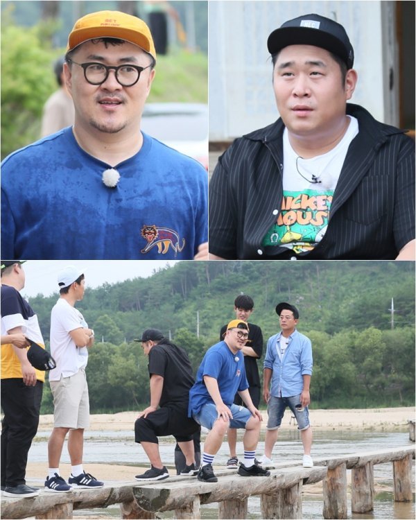 이 가운데 ‘1박 2일’ 대표 먹방 주자인 데프콘과 ‘먹깨비’ 문세윤의 한판 대결이 성사되었다고 해 관심이 모아지고 있다. 공개된 스틸 속에는 물 위를 가로지르는 좁은 다리 위에서 서로 등을 마주하고 있는 데프콘과 문세윤의 모습이 담겨있어 눈길을 끈다.