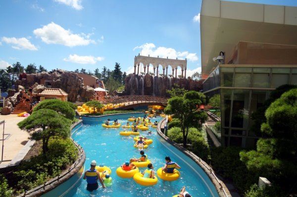 스트레스 해소에 좋은 수압마사지 바데풀과 20여 개의 스파탕을 갖추고 있으며, 다양한 슬라이드 시설(마스터블라스터, 튜브슬라이드, 스피드슬라이드)과 급류파도풀(토렌트리버), 키디풀, 유수풀 등갖추고 있다. 그 외에 엄마들에게 인기 높은 기와한방탕, 클래식탕, 캔들 스파와 무료찜질방 사랑채, 키즈카페, 전용벤치 등 가족 방문객을 위한 시설도 갖추고 있다.