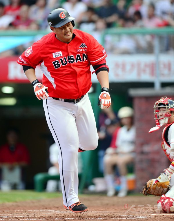 볼에 맞은 이대호 ‘참을 수 없는 고통!’