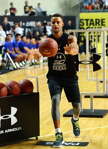 커리는 장충체육관과 언더아머 강남 브랜드 하우스 등에서 국내 농구팬을 만났다. 국내 최고 인기 예능프로그램 MBC-TV‘무한도전’녹화에 참여하는 등 바쁜 일정을 소화했다. 커리의 내한은 스포츠브랜드 언더아머의 주최로 이뤄진 아시아 투어의 일환이다. 그동안 커리의 아시아투어는 중국, 대만, 일본 방문에 그쳤기 때문에 이번 내한은 국내 농구팬들에게 반가운 여름 선물과도 같았다. ‘농구는 몰라도 커리는 안다’는 말이 있을 정도로 유명한 스타였기에 그동안 국내를 찾은 어느 NBA스타보다도 많은 환영을 받았다.
