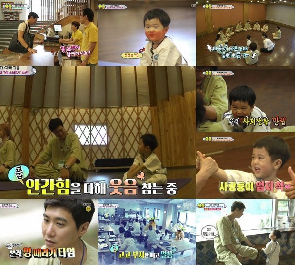 승재를 데리고 멍 때리기 수업에 들어간 고지용은 “우리에게 꼭 필요한 시간이 멍 때리기 시간입니다”라는 강사의 말과 함께 어깨를 들었다 내리는 호흡법을 비롯해 “엄~”이라고 소리를 내는 법 등 기초를 배우기 시작했다. 하지만 개구쟁이 승재는 시작한 지 얼마 되지 않아 또래 누나들을 꼬셔 폭풍 수다에 빠지는 모습으로 웃음을 자아냈다.