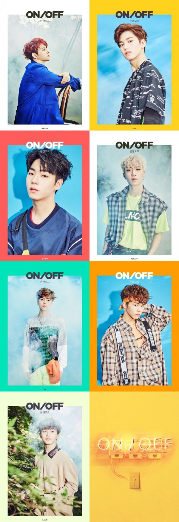 온앤오프(효진, 이션,제이어스, 와이엇, MK, 유, 라운)는 31일 자정 소속사 WM엔터테인먼트 공식 SNS 채널을 통해 첫 데뷔 앨범 ‘ON/OFF’의 두 번째 개인 콘셉트 이미지를 공개했다.