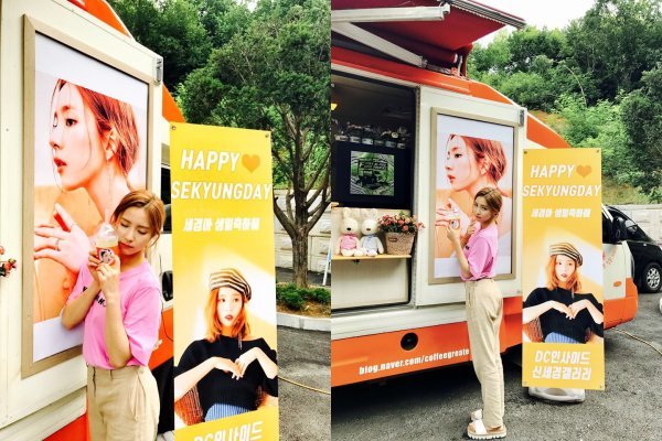 뿐만 아니라 생일 당일에 신세경의 팬들 역시 커피차를 보내 신세경을 놀라게 만들었다. 장마, 더위와 번갈아가며 줄다리기 중인 \'하백의 신부\' 팀에게도 커피차는 단비처럼 시원한 선물이 됐다.