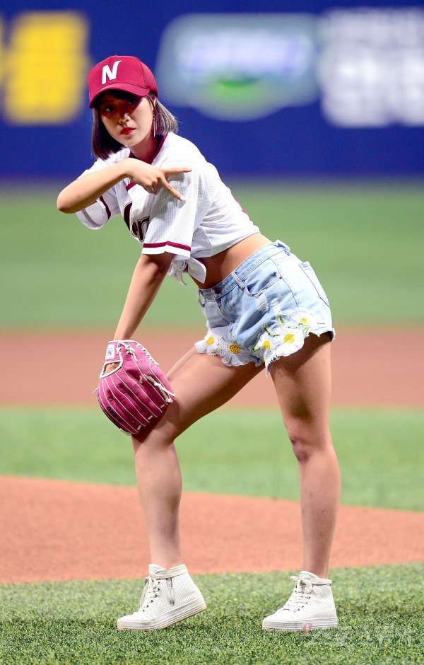 1일 서울 고척스카이돔에서 ‘2017 타이어뱅크 KBO 리그’ SK와이번스와 넥센히어로즈 경기가 열렸다. 경기 전 걸그룹 ‘리브하이’ 보혜가 시구를 하고 있다.