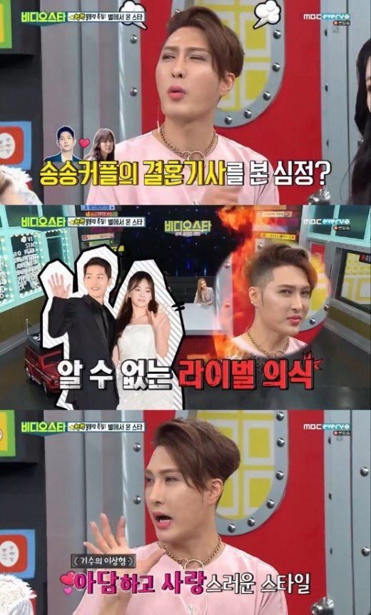 이날 ‘비디오스타’에서는 또 진행자들이 “한결같은 김기수의 이상형이 송혜교다. 얼마 전에 송중기한테 뺏겼다고 했느냐”고 물었고, 김기수는 고개를 끄덕였다.