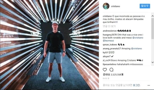 호날두는 1일(이하 한국시각) 자신의 인스타그램에 “내가 너무 빛난다는 사실이 사람들을 괴롭히는 것이다. 벌레는 빛나는 등불만 공격한다”는 글과 함께 후광이 비추는 듯한 사진 한 장을 게재했다.