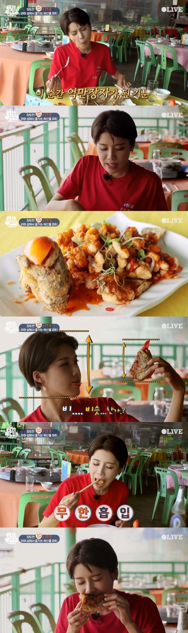 올리브TV \'원나잇 푸드트립‘에서 장도연이 해산물 파티를 즐긴다.
