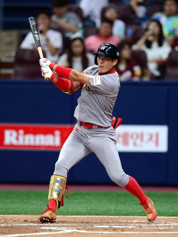 2일 서울 고척스카이돔에서 ‘2017 타이어뱅크 KBO 리그’ SK와이번스와 넥센히어로즈 경기가 열렸다. 2회초 무사 SK 노수광이 우전 안타를 치고 있다.