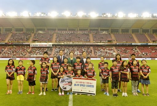 프로축구 K리그 클래식 포항스틸러스와 축구사랑나눔재단이 포항 지역 내 소외계층 어린이들을 위해 장학금을 전달했다.