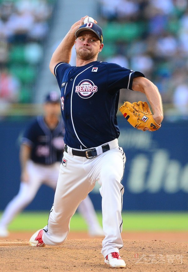 4일 서울 잠실야구장에서 ‘2017 타이어뱅크 KBO리그’ LG트윈스와 두산베어스의 경기가 열렸다. 1회말 두산 선발 보우덴이 힘차게 공을 던지고 있다.