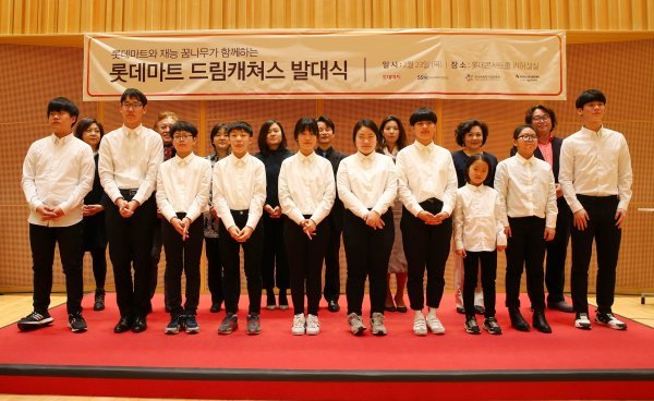 롯데마트의 음악 재능 육성 사업 프로젝트 ‘드림캐쳐스’ 발대식 모습. 사진제공 l 롯데마트