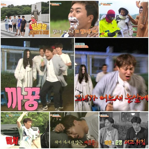 납량특집의 하이라이트는 최강의 겁듀오 \'태현-준영\'이었다. "연예인이 된 거 지금 후회하고 있어"라며 흔들리는 동공을 감추지 못하던 준영과 태현은 시간 단축을 위해 짝을 이뤄 폐교로 향했다. 그러나 폐교 입구부터 고난의 시작이었다. 문을 밀어야 하나 당겨야 하나로 옥신각신 하던 끝에 태현이 안내자 귀신과 눈이 마주친 것. 이에 혼비백산 줄행랑을 치던 두 사람은 급기야 안내자 귀신을 빼기로 합의를 보고 다시 폐교로 향했다.