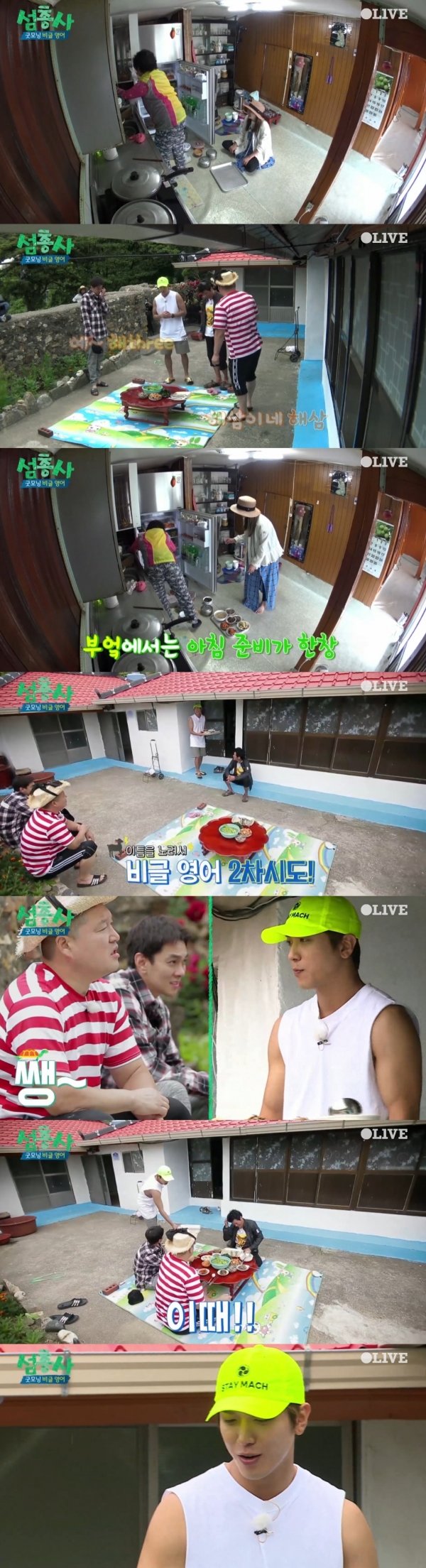 7일 오후 선공개된 영상에서 정용화는 “하이 굿모닝”이라고 김희선에 서양식 인사를 건네며 등장했다. 그는 아침부터 신이 난 듯 계속해서 엉터리 영어를 선보이며 ‘섬총사’ 멤버들을 당황케 했다. 그는 “굿모닝”, “와우”를 연이어 외쳤고, 이어 “그린 상추 유노”, “수저쓰 앤 미엵”, 해삼을 “해 Three”라고 말하며 김뢰하에게 웃음을 선사했다.