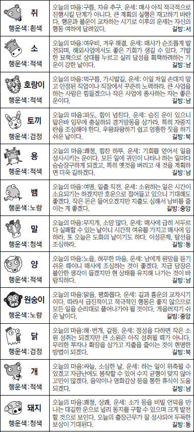 ■ 오늘의 운세|박경호의 운수 좋은 날