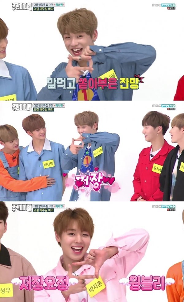 9일 오후 방송된 MBC 에브리원 ‘주간 아이돌’에서는 ‘프로듀스 101 시즌2’를 통해 데뷔한 워너원 멤버 전원이 출연했다.