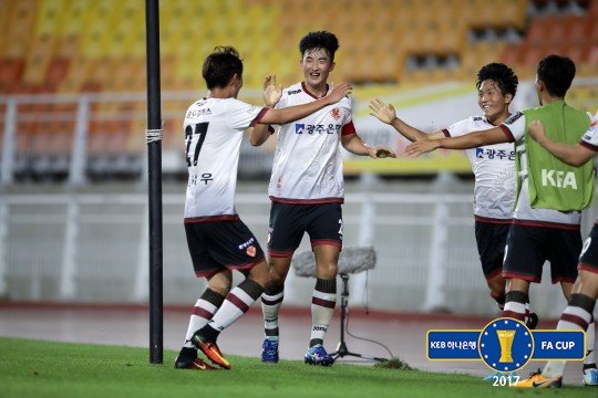 어느덧 8강 싸움을 마무리한 ‘2017 KEB하나은행 FA컵’은 이른바 언더독의 반란으로 흥미를 더해가고 있다. 9일 K리그 내셔널리그(3부리그) 목포시청이 챌린지(2부리그) 성남FC를 3-0으로 완파한 데 이어 챌린지 부산 아이파크는 클래식(1부리그) 전남 드래곤즈를 3-1로 제압하고 4강행 티켓을 손에 쥐었다. 두 팀과 마찬가지로 이번 FA컵 8강전에서 반란을 꿈꿨던 팀은 바로 광주FC다. 16강에서 아산 무궁화를 3-0으로 꺾고 창단 첫 8강에 올랐던 광주는 내친 김에 4강 진출까지 노렸다. 그러나 클래식 선두권을 달리는 수원 삼성의 벽은 높았고, 결국 연장 승부 끝에 1-2로 패해 FA컵 나들이를 마쳤다. 그런데 경기를 마친 광주 남기일 감독을 비롯한 선수단의 표정은 그리 어둡지만은 않았다. 연장전의 후유증이 얼굴에 남아있긴 했지만, 값진 소득을 챙겼다는 위안이 팀 내부를 감쌌다.